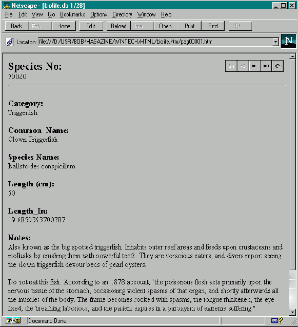 После конвертирования базы BIOLIFE.DB, которая содержит много текстовых данных в мемо поле и одно поле, которое мы игнорируем (image field), мы получили следующий результат (обратите внимание на заголовок, который показывает запись 1 из 28):